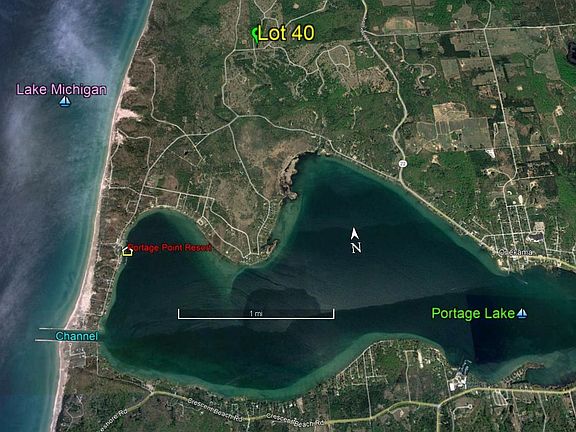 Beautiful, wooded, corner, 1.3 acre lot to build your dream home in the Portage Ridge development. Walking distance to the community pool. Easy access to your building site. Underground natural gas, electric, and cable already to your site. Within a couple of miles to both Lake Michigan beaches and Portage Lake. Rent seasonal slip space at the Portage Point Resort, just down the road, to keep your boat. Located just off of M22 scenic highway which takes you along the lakeshore past orchards to quaint towns, lighthouses, and wineries . Close to world class fishing and golf courses. Access all the information you need about Portage Ridge Condominium development at their new website: https://sites.google.com/view/portageridgeatonekama. Be sure to review by-laws and master deed amendment 3.