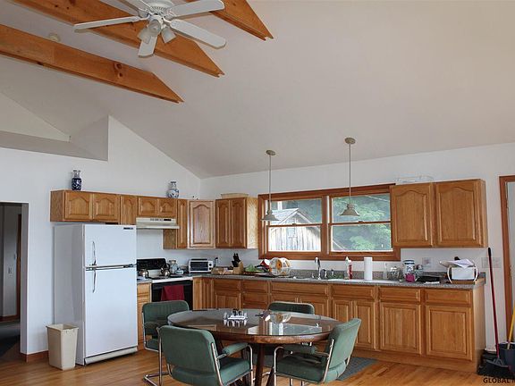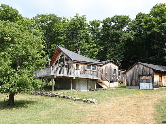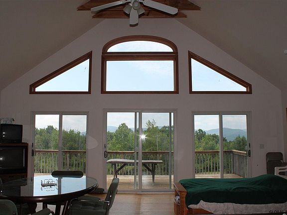 Looking for a place to get away from it all? Enjoy your very own mountain top with tons of property to roam. There are numerous trails throughout the property and stunning views. The home has a very open floor plan that could easily converted for more bedrooms and bathrooms. Sit out on your expansive deck enjoying the views in the summer or cozy up next to the fireplace looking out at the views from the floor to ceiling windows during the cold winter nights. The garage and sheds offer ample storage. Very Good Condition
