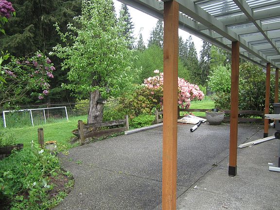 Available now. By appointment only - PLEASE NOTE: No animals - no exceptions . Three bedroom, two bath rambler on Hwy 9 near Maltby Rd. Close to Woodinville Costco and great schools. New paint , refinished hardwood floors and new carpet throughout. House sits back from the highway with a private yard that is partially fenced and backs up to woods and a creek. This home has 2 master bedrooms, both with walk in closets and one with a bathroom. The third bedroom is ideal for a home office, den, etc. but no closet. Also a large dining area with built in storage. Laundry hook ups in pantry area. Included is a 1 car detached garage bay with separate workshop and driveway parking for 1 - 2 additional vehicles. Large shop on left of garage is not included.