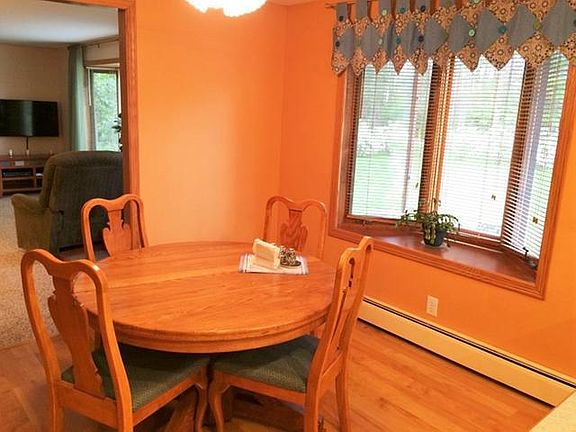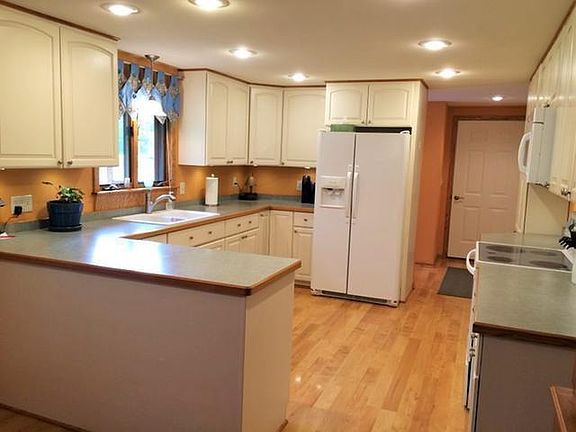 This cozy country home with many outdoor amenities is one you won't want to miss! Located 5 miles out of town, this well-kept 2 BR, 2-1/2 BA home offers a spacious kitchen with breakfast bar and pantry, ensuite master bedroom, and in-floor heating in the kitchen and master bath. Downstairs is a dry full basement with work/storage area and space for the imagination. The one car attached garage holds a half bath with a wash tub for cleaning up and keeping dirt outside. Make good use of 2 outbuildings, one of which is a 20x24 workshop which can be heated with LP. The second is a large 14' tall, 36x48 concrete floor pole shed for toys w/kayak lift, canoe rack, plenty of extra storage and can hold an RV. To relax, sit around the firepit beside 504 ft of water frontage along Squaw Creek with a yard beautifully landscaped and certified as wildlife habitat. Catch fish in the creek, listen to the birds sing, and watch deer steal an apple from one of the apple trees. Call to see it today!