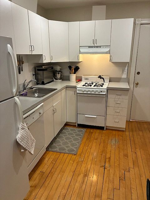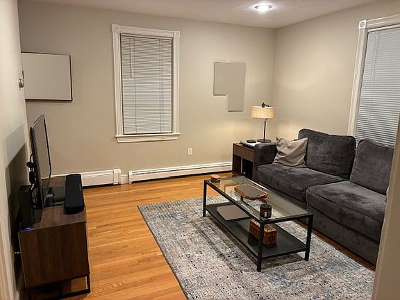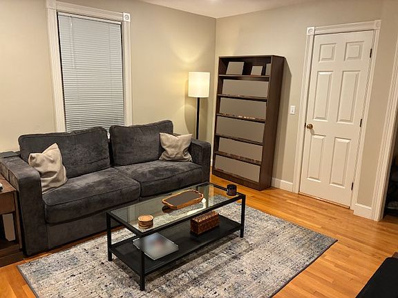 Porter Square - In a stucco building with a beautifully landscaped courtyard. Eat in kitchen with dishwasher. Recessed and track lights. Hardwood floors. Coin-operated laundry in basement. Heat and hot water included in rent.