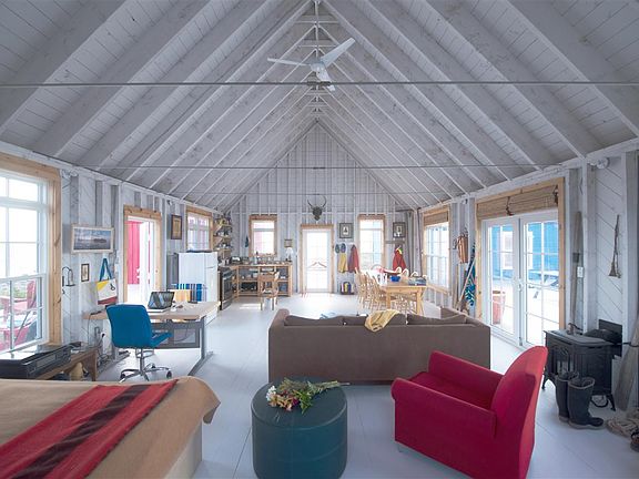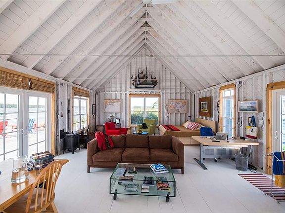The silence...just the sound of the terns and gulls, the waves rolling up on the long sandy beach. Waking to the sunrise, dining by the sunset, filling the days in between wandering the island trails, picnicing on the treed, elevated ends of the island, snorkelling and swimming off the float, kayaking the many surrounding islands that are providing their shelter. Or maybe you prefer to lounge on the 60'x60' deck, surrounded by ocean views, sun and sea air, neighbouring boats sailing past to keep you company. Feel your shoulders relax and your breath deepen. This is life on Spectacle Island, a 9.88 acre island, just a short boat ride from Indian Point in Mahone Bay, surrounded by the towns of Mahone Bay, Lunenburg and Chester, with all that they have to offer. A colourful cluster of cabins, each with a purpose, designed to resemble the classic "fish Stores" common many years ago are just 8 years old. The main building or "Lodge" offers a fully equipped kitchen, large dining area for entertaining, living room with fireplace and sleeping area. Two sleeping cabins, both with fireplaces and a storage cabin with washroom, outdoor shower, washer and dryer provide all the amenities and just under 1400 square feet of living space in total. There are two dug wells, one at each end of the island, with one in use and eight 100lb. propane tanks providing fuel for the water heater, washer/dryer, oven, refrigerator, gas fireplaces and barbecue. The silent run generator located behind the utility house is the power source for the lights, espresso machine and recharging all of your devices. Cell service from the mainland is readily accessible and allows for working from home and video conferencing should you require or desire. Enjoy some of the best sailing on the Eastern Seaboard right on your doorstep. Spectacle Island offers the very best blend of civilization and nature. Not so much a destination, but a returning. Inquire today for more details and highlights of the island.