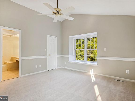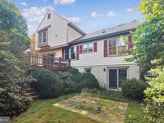 Well maintained by original owners is this Kettler Brothers built 4 br, 3.5 bath Churchill model in sought after MV East Village - The Downs. The home is situated on a private treed cul-de-sac lot and features Kitchen with wood cabinets and vaulted ceiling, adjoining breakfast area, LR and DR with vaulted ceilings and hardwood floors, sunken carpeted FR with rustic beamed ceiling, brick wood-burning fireplace, wet bar, powder room and triple slider to large wood deck. Upper-level features Owner's suite with vaulted ceiling and full bath with vaulted ceiling, and three additional bedrooms with full bath. Lower-level features finished recreation room, full ceramic tile bath, laundry room with washer and dryer, recessed lighting, and patio door to rear yard with concrete stone patio. Refer to flyer, floor plan, and list of improvements in MRIS Contract Disclosure Documents. Thank you.