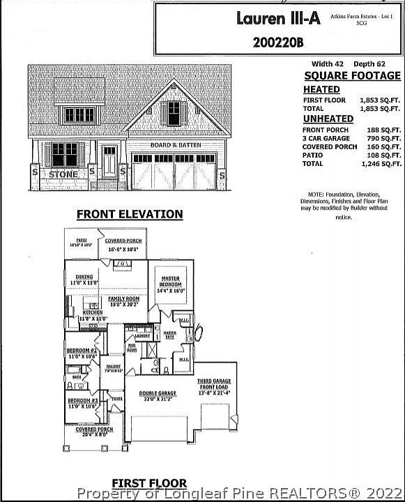 The Lauren III A features 1853 sq. ft. with 3 bedrooms, 2.5 baths and a 3 car garage. Open concept family room, kitchen and dining room. Covered front and back porches with a grilling patio. Large gallery hallway off of the foyer. Located close to Lillington, Fuquay Varina and a short commute to Sanford or Ft. Bragg.