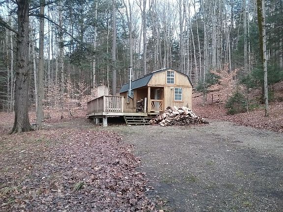 Beyond a gated driveway, tucked into the woods you'll find this perfect hunting & camping escape. Just a short 1100' walk to the 4,655 acre Lincklaen State Forest, this is the perfect property for wildlife-lovers and sportsmen. The almost new cabin makes a great family-friendly escape - 1 bedroom plus 2 sleeping lofts, kitchen, shower room (water from storage tank), and an outhouse. Electric provided by 400 watt solar system, with additional hookup for a generator. Lots of little design touches to please the whole family! Firepit with views of the beautiful creek babbling through this gorgeous wooded property. Deer and wildlife are drawn to the stream, apple trees and berry bushes. Don't miss out on this special property in the heart of Upstate New York!