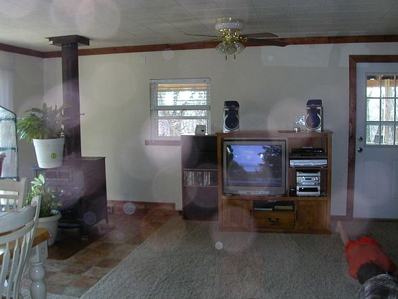 REDUCED PRICE - 5 ac. Very nice home at end of public road. Wooded areas and wildlife all around, yet only 10 minutes to town. Remodeled 2007, French doors, new windows, floorcoverings, full width porch for watching the deer play across the private road. small barn, storage shed and side deck. Large, excellent wood burning stove. Some land open, but mature shade trees provide very nice evenings on the porch.