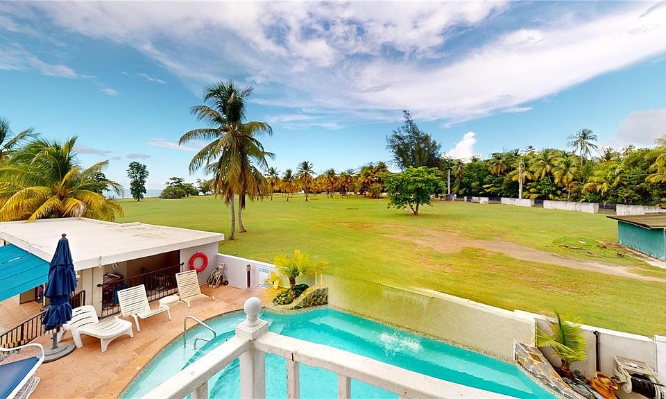 PALMA SOLA, Las Picuas, Rio Grande, Puerto Rico 5 Bedrooms · Ocean Front · Pool OFFERED AT: $2,400,000 Discover your Caribbean oasis in the quiet Las Picuas neighborhood, just five minutes from Rio Mar resort. Perfect for beach lovers, this oceanfront property is ideal for snorkeling, paddleboarding, fishing, and sailing. This solid, three-story concrete home features French doors, storm windows, roll-down security doors, a pool, patio with bar, and generator. The main house has five bedrooms and three bathrooms. The master suite has an ensuite bath, while the spacious kitchen/living area and media room provide comfort. The roof deck is built for entertaining, complete with a shaded area and bar. An oceanfront casita with a roof deck offers breathtaking Caribbean views. The gated property features a utility building with bathrooms, storage, and lush tropical landscaping.