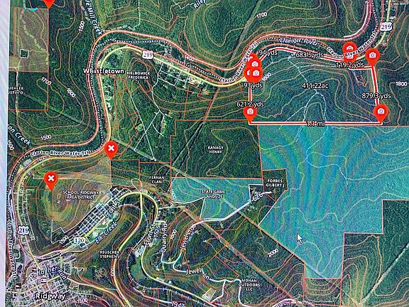 *Lowered Price* 380 Acres Near The Clarion River. This property has building locations on the mountain top and other potential building place that has springs that could be used for water. There is roads and skid trails in place. This is a great area for hunting game and borders State Game Lands #25 (23,717 Acres) and Private ground (2,554 Acres). Located on PA Route 219, Ridgway, PA 15853, Ridgway Township, Elk County. No Utilities except electric on road. No OGM's, sold years ago by a previous owner. The Timber 14" and bigger was sold by previous owner and must be removed by 3/25/2024. For Sale by Owner $415,000 Call or Text Owner Steve 814-512-2856 M-F 8am to 4pm to schedule a showing. No owner financing or lease to own.