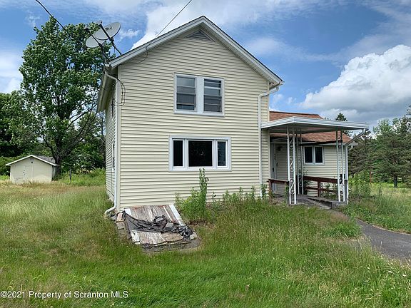 This farmhouse with detached 2 car garage sits on a double parcel totaling 1.4 acres located near the SR 307 & SR 690 traffic light in Springbrook Township. Property has recently been zoned COMMERCIAL! Fix up and rent this North Pocono home or clear the way for commercial space!
