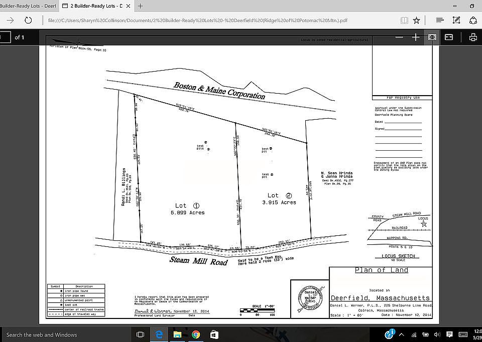 Deerfield, MA - Beautiful 6.9 acre lot (lot 1 in image) located on the foothills Pocumtuck Mountain in the Pioneer Valley adjacent to Old Deerfield. Access via dirt town road. Three acres are builder ready. Perc test passed. Great schools. Easy access to routes 91 and 2.
