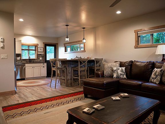 Newly re-built craftsman-style home, recently brought down to the studs and re-built with modern plumbing, heating, interior and exterior doors and double pane windows. It is situated in desirable, hard-to-find, lower Ennis location! This home is just one block to shops, galleries, restaurants, library and all that Main Street Ennis has to offer! A 2 bed/2 bath with the “modern mountain” style charm throughout and an open floor plan. The open living room & kitchen area features quartz countertops with Pennsylvania fieldstone backsplash, ample cupboard space, a gas fireplace stove, and easy flow to the outside front deck or backyard stone patio. Property has a private setting due to the perimeter fence with hand-crafted metal gate, landscaping, trees and shrubs. Enter property is equipped with a new sprinkler system.