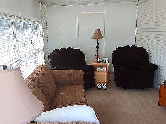 Park model home with attached inclosed deck which serves as a living room and laundry room. Is in a 55 and older RV park.