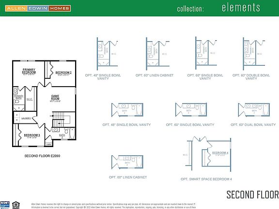This traditional design includes 3 bedrooms, 2 ½ baths, a first-floor den plus a second-floor game room with the option to convert to a 4th bedroom.. The layout has amazing flow and versatility. The great room is open to the kitchen & dining nook, and the den is tucked away in the back of the home, making it ideal for an office or study space. There are several options to customize the kitchen, including adding a breakfast bar and/or island. There is plenty of storage space in the mudroom, which includes a large closet along with the option to add a built-in bench. The powder room is discreetly and conveniently located off the garage. The second-floor features three bedrooms, including a large primary suite equipped with a walk-in closet & private bath. For additional recreation space, the game room offers plenty of space, but can also be converted to a 4th bedroom. The laundry room is conveniently located on the second floor along with a full bath. For additional space in the basement, choose the option to add a rec room, additional bedroom and full bath.