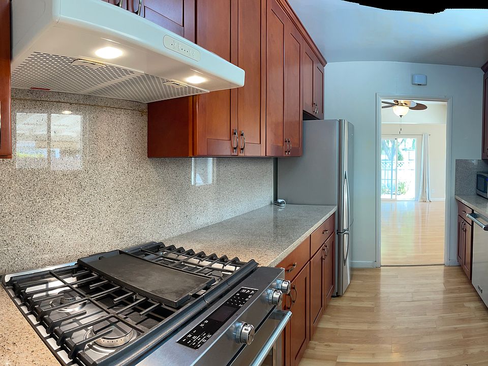 New roofNew pergo floorsStainless steel appliancesViking dishwasherKitchenaid gas stoveNew double-pane windowCeiling fans