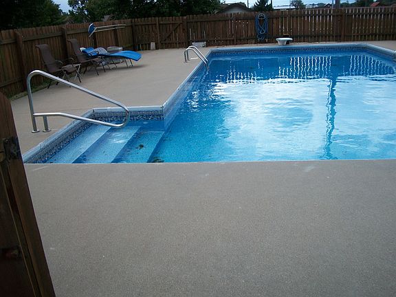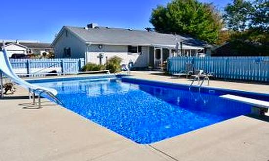 white brick with nice landscaping, with beautiful 24x40 inground pool,with concrete patio around entire pool area, privacy fence around pool, and locking gates at every entrance to pool area, with privacy fence, fenced-in back yard, very nice neighbor-hood, large fireplace with wood burning insert