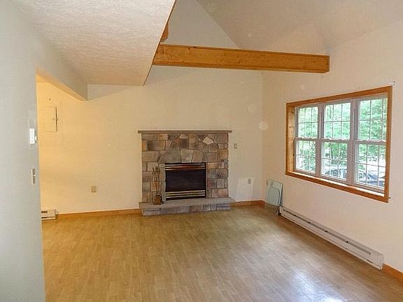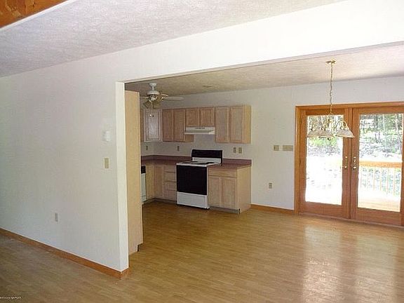 Beautiful vinyl-sided contemporary home BACKING UP TO THE STATE PARK. Open floorplan, gas fireplace, 6' useable crawlspace, large rooms and loft area. Large deck in rear. Walk to the pool and golf course. North Pocono Schools.