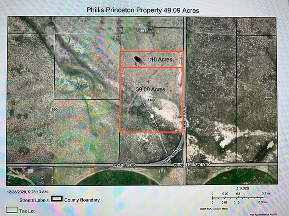 This is a great location! There are two lots included in the sale, one is tax lot 1400 which is 39.09 acres and the other next to it is 10 acres. There is NO home on this property currently. This property has not been approve to build a home. A potential buyer would need to get a (CUP) Conditional Use Permit from the county planning department in order to build a home. This is a great location just off the main highway 78 in Princeton Oregon. Nice thing about this property is there is a well already on the property. The well was just cleaned out and inspected in December, 2020. It has a new 1/2 horse power Pentek Motor installed with a Flow Wise pump. Well is 60' deep. The property is fenced and has good access off of a very good maintained PAVED road. There is also power on the property. This is a great location if you want to be close to birding, hunting or just peace and quiet lifestyle. Great place for a hobby farm/ranch.