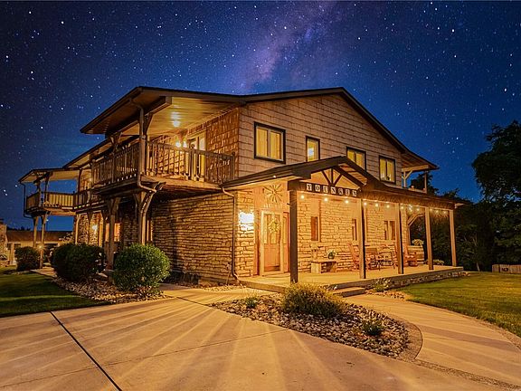 Privacy, Serene, Tranquil, Mulitfunctional, Never Leave Your House. Situated on 67 acres, Imagine your very own paradise to wake up to! Main home features open concept, 5 bedroom (4 with balcony), 4 full baths, full house generator. Bottom floor incorporates Guest Quarters, full kitchen, full bath, bedroom and game room. Outside premiers a 50x100 4 stall garage with 14' garage doors possibilities include own business/horse stalls/gym/banquet area with mini kitchen and half bath, etc. Also featuring 3 stall garage with office space on top level. Pavillion with fireplace/pool deck and sports court. Full house Generator, underground electric, RV hook ups, 4-H Barn, field pavilion with water/electric, 4H barn with water/electric, walking trails, so much more!