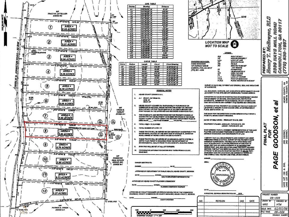 Beautiful wooded homesites 5-8 acres. Only 5 tracts remain - conveniently located on the Heard/Coweta County line at Power Crossroads. These prime building lots are already surveyed with county water available. Peaceful country setting with abundant deer and turkey. A perfect place for your custom home offering a spacious rural lot near city conveniences. Easy commute to Newnan or Franklin GA.
