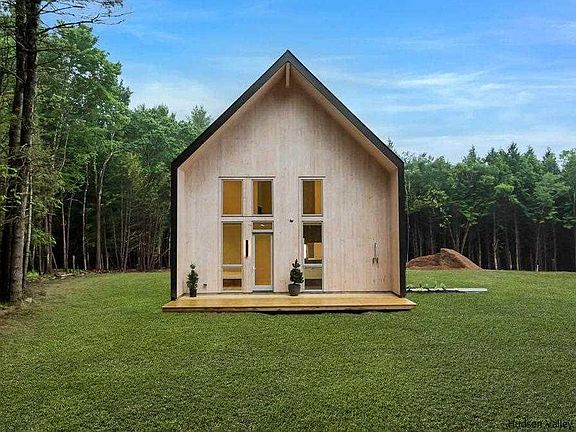 Thoughtfully designed by Incorporated Architecture and Design, NevelHaus boasts 3 bedrooms and 2.5 bathrooms, 1800+ square feet and an open floor-plan to accommodate and enhance all forms of daily living. Soaring 30ft ceilings in the living loft allow for large gable-end windows that bring in an abundance of natural light and provide spectacular views of the landscape. The Kitchen features custom oak millwork by Reform paired with high-end panelized Bosch appliances, quartz countertops, and a generously sized island. The first first floor features a Master Suite with a luxuriously sized bathroom, private terrace and outdoor shower. The second floor offers two bedrooms, a full bath, den/office space, and a reading nook. Outside the main floor living loft you'll enjoy yet another large terrace for entertaining. NevelHaus will be available with its own a la carte menu of high-end amenities including swimming pool & spa, sauna, covered parking, EV charging station, solar panels, and fire pit. The lot is located in the Highlands Subdivision Located just 90 minutes from New York City and 2 miles from the Bethel Woods Center for the Arts. 3 Bedrooms 2.5 Bathrooms with Radiant Floor Heating Office/Den Reading Nook 30' Vaulted Ceiling in Living/Dining Loft 800+ SF Entertainment Living Room Bosch Appliances Kitchen Cabinetry by Reform 2 Outdoor Terraces Outdoor Shower Designed by Incorporated Architecture and Design