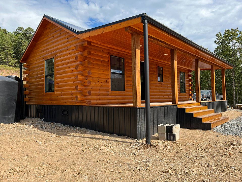 Turn-key off-grid cabin on 10 acres in The Preserve at Boktuklo Mountain. This cabin features solar system capable of running mini split a/c system, propane log fireplace, stainless steel fridge/freezer. propane range/oven, granite countertops, custom cabinets, rainwater capture system, septic system. Addition features include gravel driveway, pad, and pond you can view from the covered front porch. The Preserve at Boktuklo Mountain is a recreational development located 5 minutes from the Honobia store, The land is beautiful and pristine and was managed as a wildlife management area until March of 2022. If you are looking for a piece of the wilderness with the essentials of home this is the place for you!