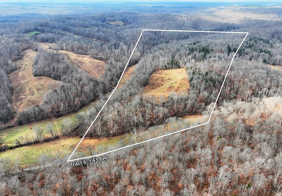 Tract #6... 43.6+- acres beautiful land perfect for your dream home or mini farm. Quiet Location with a mix of woods and fields, small creek, multiple building sites, no restrictions. Not far from Cumberland River. Seller will provide updated survey at closing. Property taxes to be assessed. Nine other tracts are available from 5 acres to 40 and will be priced upon request.