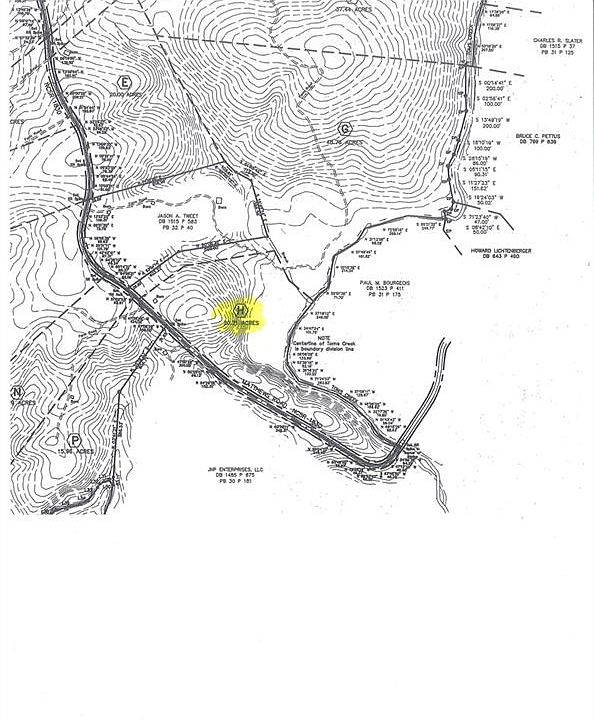 Tract has 4 high knolls that drop off steeply to Tom's Creek. Great views across Tom's Creek and of Pilot Mountain, Hanging Rock, and Sauratown Mountain. Nice 3.5+ acre field for cultivation in bottom. Numerous building sites. Approximately 1,485 feet fronting Tom's Creek. All numbers subject to survey.