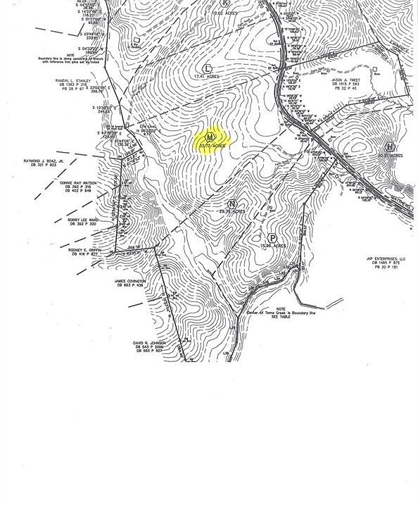 Excellent views of Pilot Mountain, Hanging Rock and Sauratown Mountain from various spots. One of the largest, nicest, highest locations on the farm. Excellent building sites. Large cleared, cultivated fields in front, balance wooded. Very nice tract. Land slopes gently from road and crosses a nice small stream at rear. Excellent topography. Matthews Farm has been re-platted to create more, smaller tracts. All dimensions and acreages subject to final survey.