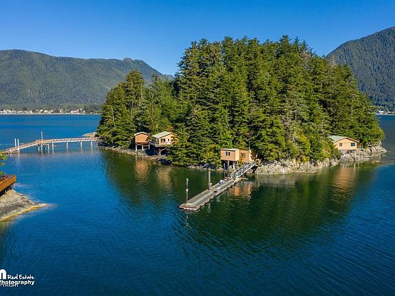 Ultimate Island retreat also known as Quest Island on 4 acres with 2 houses, 6 guest cabins, gear shed, & 2 docks capable of holding large yachts. Walking path around the entire island, City power available, short boat ride from Sitka. Potential for multiple uses including Air BNB or base of operations for a fishing charter business. Quick access to fishing, hiking and all that SE AK has to offerOutstanding opportunity to create a multi use destination property for fishing charters, weddings, business meetings, Air BNB or other uses that will take advantage of everything Sitka has to offer. There are 2 homes on the property, 6 guest cabins and a gear shed. One of the homes is set up to entertain a large group of guests with a separate kitchen for guest meals and a large den/gathering room. The house also has a residence in back for a manager or owner with a private master suite and second kitchen. There is a one bedroom apartment on the second level of this house. The second home is set up for an owner and features a remodeled kitchen with stainless steel appliances, vaulted ceilings, large master suite with a remodeled bath & custom shower and a loft area for guests. There are four guest cabins that are 2 bedroom/2 bath, one guest cabin that is a studio and another cabin for staff that has 4 bedrooms and one bath. All have incredible views and spacious decks. There is a boardwalk around the entire island for easy access to all of the buildings. Two large docks for holding multiple boats or large yachts. This is a remarkable property with unlimited potential.