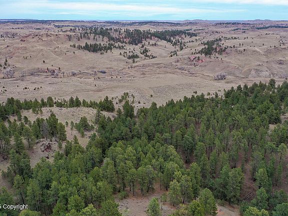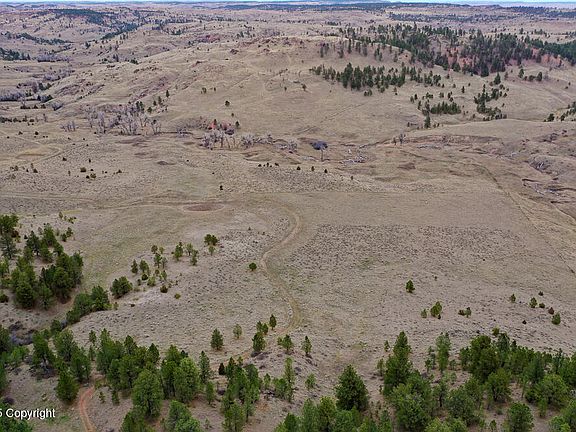This tract proves to be one of the larger acreage properties on Broad Axe Ranch, with an even combination of pine-covered hills and open grassland. Looking to the west, the Bighorn Mountains prominently show on the horizon. Looking to the east, rolling hills and pockets of pines are present as far as the eye can see. Open meadows are scattered throughout the timber in the higher elevated spots, while heavily used game trails are hidden in the timbered bottoms. Most springs, run-off culminates on the northeast corner of the property. Minor covenants are put in place; contact the listing agent for more information.