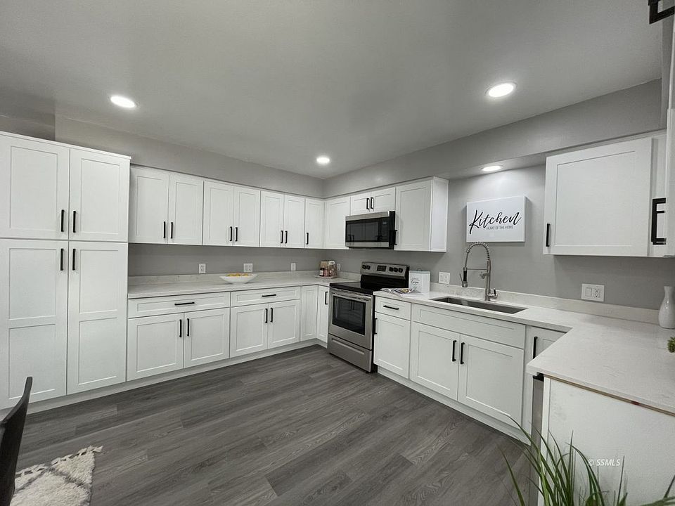 Stunning Modern Home Just Remodeled! Large Bright kitchen with Shaker cabinets, soft close drawers, 5" black handle pulls, quartz counter tops, stainless appliances, European coil-over restaurant style faucet with deep modern sink. Want lower bills? Brand NEW Mini splits which are Ultra High efficiency zoned heating / cooling (no need to heat or cool the entire house)Need one room warmer Or cooler, each zone can be set to its own temperature! Home also has a pellet stove & 2 evaporator coolers. Want low maintenance headache free floor? all floors are water proof vinyl floors! The Vinyl windows and sliders help to keep the bills low and look really good too. Home was repainted with modern grey tones on the inside and out. Ceilings are scraped & textured & have Ultra High Efficiency LED lighting to once again keep the bills low and look amazing doing it. Bathrooms have super cool mirrors that light up with a touch of a finger!!! Outside has tons of storage and a workshop! This type of home will impress your friend and your home will be the "place to go" should that be what you want The formal dining area will accommodate a table to fit as many as you like :) Hurry this wont last!