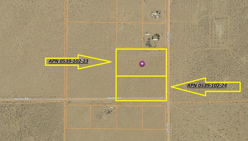 The Price is for both Parcels almost 10 acres of land combine. Both parcels are 4.852 Acres each. Property has power poles in front of street on Tami Rd and Power poles on Barrett Rd. Land is moving in Newberry Springs come and get your 2 lands sell one keep one or keep both.