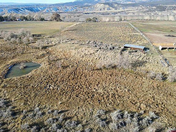 Enjoy the acreage lifestyle on this 9.55-acre property with views of the Grand Mesa and paved access via Bull Mesa Road. The land features 3 shares of Frost Irrigation water, newer irrigation infrastructure, fencing, and a small spring-fed pond. No HOA or restrictions. Ideal for a custom home, animals, and wide-open space. Buyer to verify all water rights.