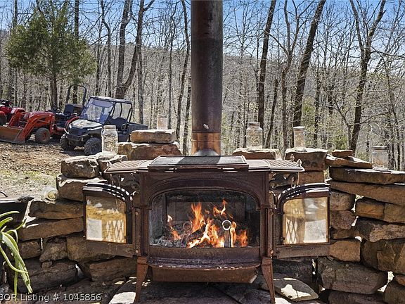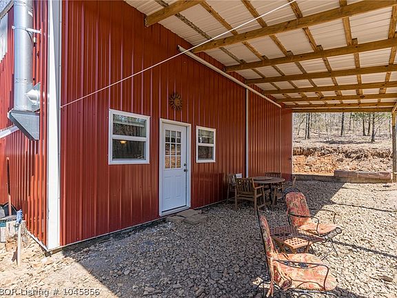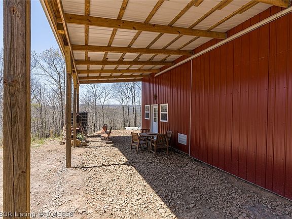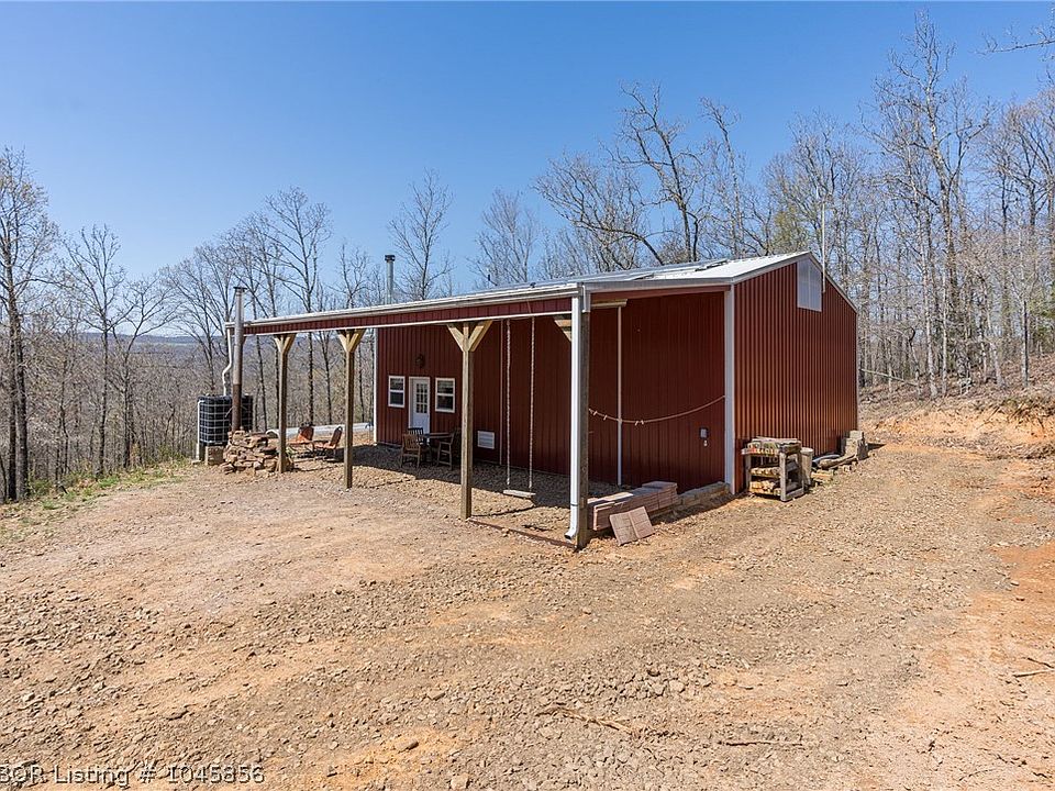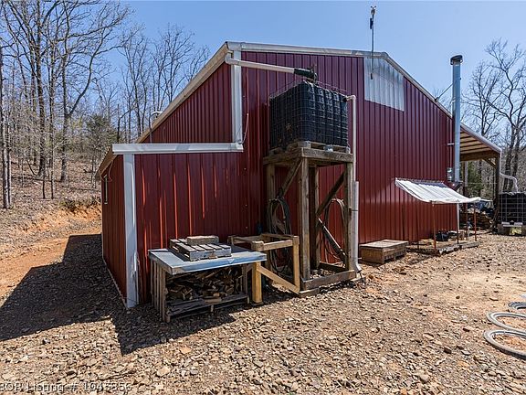 Off grid & private! Built in 2018, 30x40 wood frame metal building with approximately 1/2 being heated living space & 1/2 storage. Powered by Solar, rain catch system for water, compost style outhouse and outdoor shower. 2 wood burning stoves, refrigerator, and plumbed for a bathroom. 66.13 wooded acres with maintained ATV trails leading to several benches, a waterfall, and McClaslin Branch. Water meter & electric at the road. Appt only, can not be seen from the road. Easement to access the property.