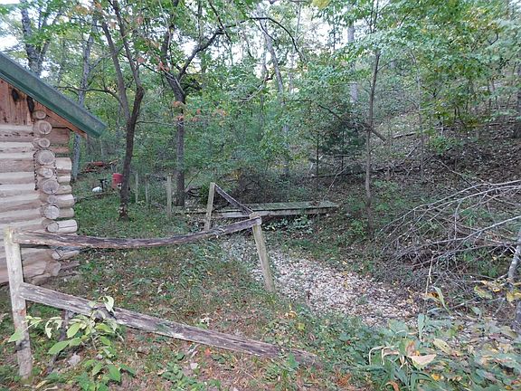 Recreational Property Deluxe!! 66 m/l wooded acres with log cabin, wildlife ponds, and miles of 4x4 trails. Adjoins a county maintained rd in a very good hunting area. Big Sugar Creek is just down the road but very private and quiet. Older log cabin needs some TLC but very unique and usable. Lots of trail camera pics and several mature bucks taken over the past years. Trails are all mowed and criss cross the property for excellent deer stand accessibility. Bring a few friends or family members and you have the perfect Ozark getaway. Did someone say 4 wheelers or side by sides?, Deer season is almost here, dont wait any longer.