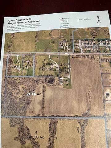THIS LAND COULD BE THE EXTENSION OF SHADOW GLEN, or a beautiful private building site. Survey in supplements show 65.79 acres but the west 20 acres was sold off leaving approx. 44.99 acres. 12" waterline and access to sewer to be verified by the Buyer's Agent with City of Peculiar. Seller holds an active Real Estate license in the state of Missouri. Seller may want to do a 1031 Exchange at no cost to Buyer. 2023-05-30