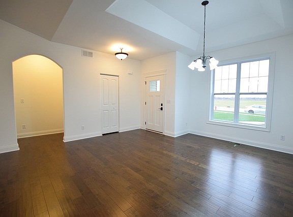 Proposed new construction. The Revere model is an open split bedroom ranch floor plan. Spacious great room with cathedral ceilings, open to dining area with tray ceiling and luxury kitchen with table space eat-in area and island with breakfast bar. Hardwood in great room, dining area, mudroom and kitchen. Granite counter tops, and 42" dovetail cabinetry with soft close drawers and crown molding are all standard. 9 foot ceilings on the main level and fireplace standard. Tray ceiling standard in master bedroom that leads to the master bath with ceramic tile, double sinks, soaker tub and separate shower. Tub can be removed to allow for an upgraded walk in shower. Mudroom off kitchen with first floor laundry that leads to the 3 car garage. Many custom options available to make this plan fit your needs. Homes built with smart home technology from Nest, Schlage and Lutron. Pictures of previously built homes, some with upgrades.