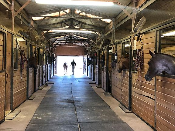 6.09 ac, 3 bed 2 bath mobile home & full equine facility. Home has new roof & plank wood laminate & carpet flooring. 14 stall horse barn 12x12 stalls w slider doors automatic waterers, feed drops, concrete footers & plugs for fans. 2 12x12 feed rooms concrete floor & hallway, 12x24 tack room, sliding door to the hallway& one outside for easy equipment loading & unloading, 12x12 wash rack w hot water, 12x12 medicine room w washing machine, fly spray system, HO florescent lights on timer, underground electrical. 2 4horse walkers 4 30x40 & 3 10x30 turnouts water piped to each, 150x220 arena, round pen, 36x36 metal shop over flow barn, water & elect, 30x90 hay barn approx 19' tall , lights..3 RV hookups parking