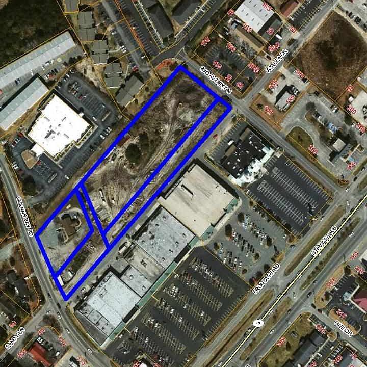 Subject property is a bank owned, rectangular shaped 1.06 acre compilation of lots on Glenns Bay Road. This is the largest available land tract in the Town of Surfside Beach. 238’ frontage on Glenns Bay Road and 830’+ feet of depth to 2nd Avenue North. Property is cleared with a 1,467 sq. ft. modular building and a 981 sq. ft. barn and 2 trailers on site. Zoned both C-1 by the Town of Surfside Beach and HC by Horry County. Utilities are available along Glenns Bay Road.
