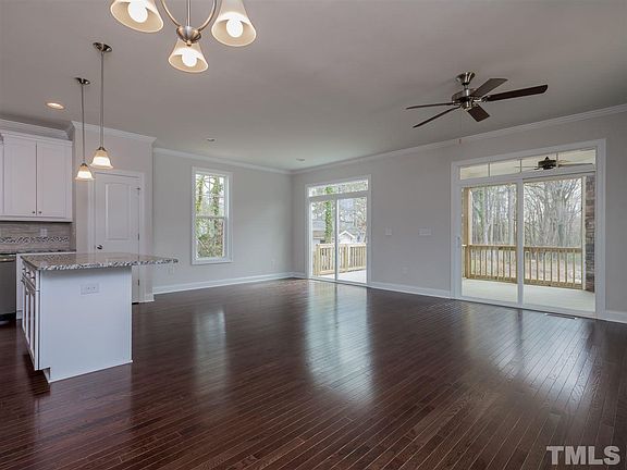 New Construction/New Community-Fantastic 2 Car Garage Open Floorplan in Apex! Gourmet kitchen w granite counters, 42" cabinets, center island, breakfast bar, SS appliances & pantry. Open family room, spacious dining area, rustic laminate flooring throughout main floor. Large master, master bath w dual vanities, granite counters, garden tub & separate shower, large walk-in closet. Guest beds with ample closets. Walk-up attic with bath rough-in, can be finished (opt.) or used for storage. Wake County.