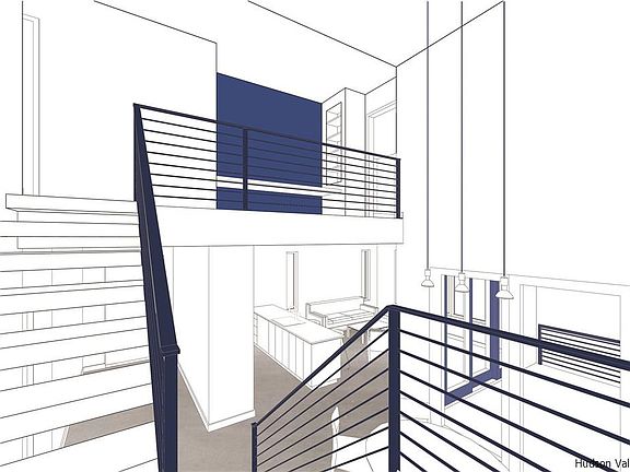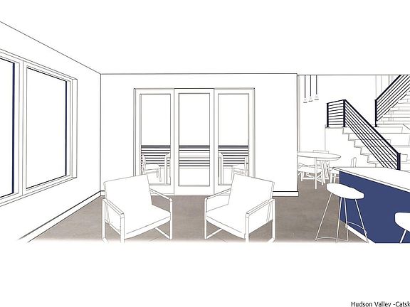 Hill Road Houses is the latest project from HV Contemporary Homes and architect Marica McKeel of Studio MM, creators of nearby Lantern House, Creek House and Tinker Box. Sited at the crest of Hill Road, one of the area's most admired locations, the 3 houses are designed with a clean, modern aesthetic and will be constructed to high standards of quality and efficiency. The dark exteriors will be complemented by a pop of color on exterior trim, which will carry through to the interior accents. The design balances efficiency with comfort in a meticulously detailed home. Open plan living blends living, kitchen and dining spaces, while three bedrooms and three full bathrooms, including a master suite with walk-in closet, are tucked away for privacy. A wood-burning stove will grace the living room for an alternative heating option. A built-in desk area and bookshelves provide an area for working at home, and two of the bedrooms will feature window seats. Bathrooms will be outfitted with Kohler fixtures and the kitchen will feature Bosch and Liebherr appliances; upgrade packages are available. The homes feature south-facing windows to provide ample sunlight in the wooded, private setting, and there's an outdoor deck, ideal for entertaining and grilling.