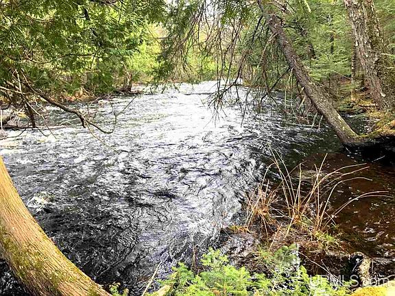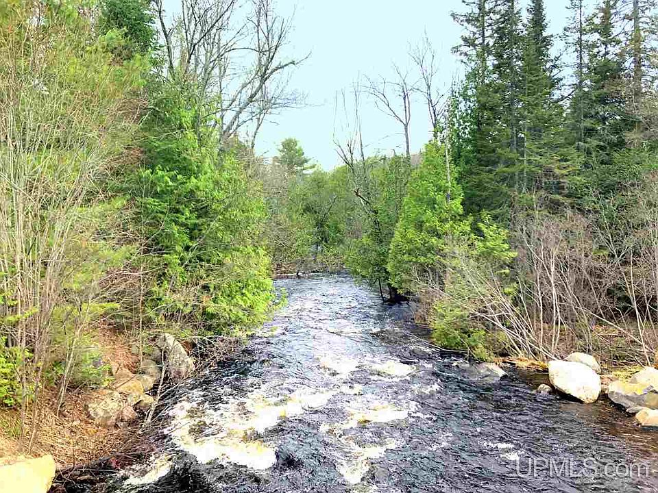 This spectacular property offers the best of both worlds. A long stretch of whitewater frontage on the Spurr River and rights to use Bass Lake right across the road. This beautiful property features towering hardwoods and evergreens surrounding a prepared private building site in a valley overlooking the the scenic river. With nearly 25 acres you can be tucked away where all you hear is the endless sound of the of clean fresh waters passing by. Set in an area famous for all varieties of recreation the U.P. has to offer you can enjoy hiking, biking endless trails, hunting, riding ATV's, snowmobiling and exploring all in Big Moose country. Private Bass Lake right across the road has a handy boat launch so you can get to the water, enjoy the fishing and share the waters with all kinds of wildlife. The big waters of Lake Michigamme are practically next door where you can enjoy kayaking, water skiing, swimming, riding jet ski's or relaxing on your pontoon. Why pay huge money for a lake lot when you have all this to use and come home to more because you have your own private Oasis on the River with not only the rapids but also your secret hidden cascading spring fed waterfall in your back yard. This would be a spectacular building site for your own new dream home, but it would be an absolutely perfect place to camp rustically or with your own camper perched by the bonfire with friends and family bonding around the bonfire. This also would be an awesome spot for your Tiny House plans to come true. Come to visit this prime property. Spend some time and explore. Listen to the relaxing sound of the rushing water and watch the wildlife stroll through. Take it all in and you will never want to leave.