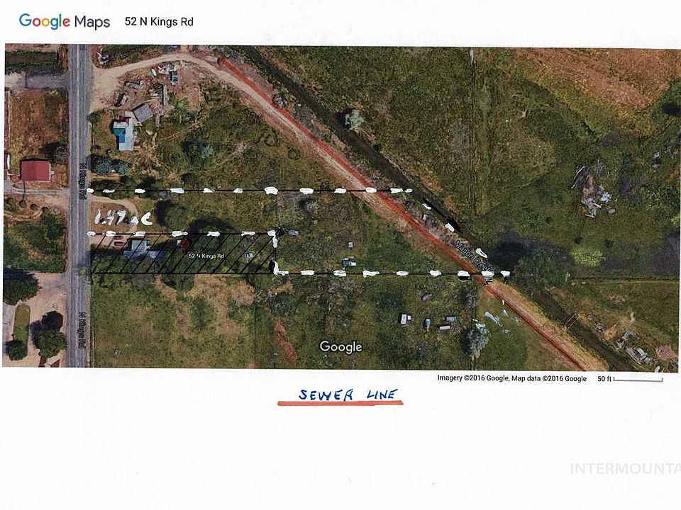 Estate Sale. Seller wants SOLD as SOON as possible. 66 ft frontage on Kings Rd and runs to creek in the back. Widens out past Mobile Home. Mobile home and the .5 acre it sits on not included. South line of this parcel is the north line of lane to mobile home. Sewer line runs across the rear of property adjacent to creek. $910 annex to city. $2888 connects to sewer. Own well needed.
