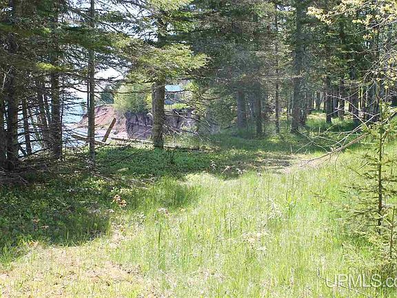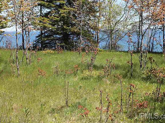Spectacular views of the Huron Mountains and Keweenaw Bay from this sandstone bluff waterfront property in Jacobsville. There is 1320 ft. of shoreline and 8.70 acres m/l. The property is formerly a hay field and has intermittent maple and conifer regeneration. Numerous building sites are possible. Access to the water is not possible due to cliff/steep bluff shoreline but property is approximately 1 1/2 miles from the White City public beach and boat launch. Seller is willing to split the property into two roughly equal parcels, subject to township approval and survey. Power lines at the street. Enjoy peace, quiet and stunning views on the edge of the historic hamlet of Jacobsville.
