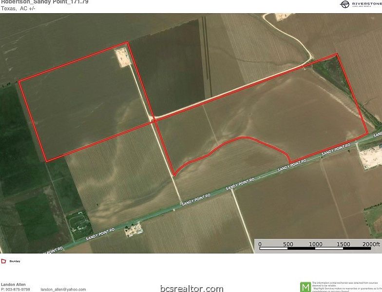 171 acres of fertile farmland located in the Brazos Bottom minutes from Bryan/College Station with easy access off paved Sandy Point Road.