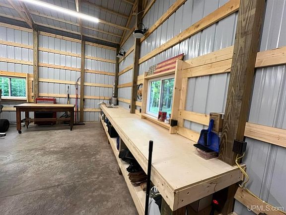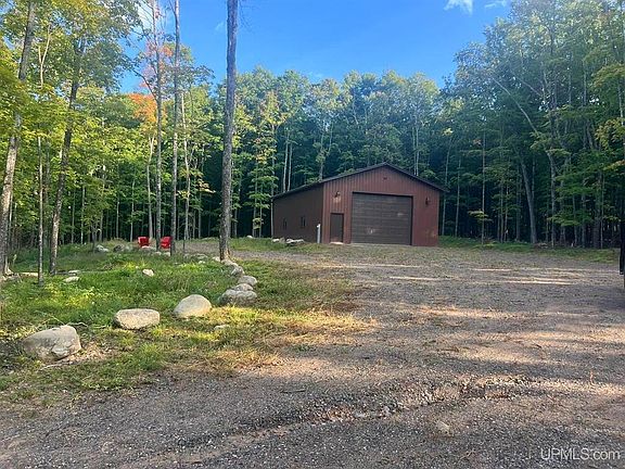 Discover your slice of heaven in the beautiful Northwoods of Iron County, Michigan! Nestled on 11 wooded acres, this newly built 30x48pole building (constructed in 2023) offers endless possibilities. Located just across the street from the stunning 560-acre all-recreational Sunset Lake, you’ll enjoy breathtaking views and easy access to outdoor adventures. The building features concrete floors, electricity, and garage door openers, making it perfect for storing your toys, converting into living quarters, or creating the ultimate getaway spot. A gravel driveway adds convenience and privacy to this serene retreat. Don’t let this opportunity slip away—schedule your appointment today!