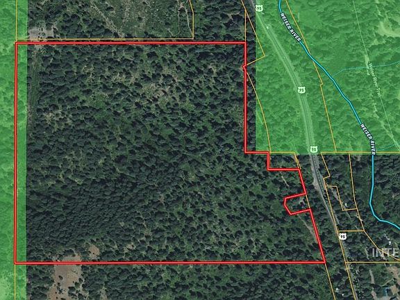 Own approximately 46± acres of timbered land with potential for a future building site per county allowances. It is situated on the west side of Highway 95, with the Weiser River located adjacent to the property on the east side of the highway. The land directly borders the Payette National Forest, offering immediate access to public lands and expansive recreational opportunities. The terrain and setting provide both seclusion and accessibility, making it suitable for recreation, investment, or a private mountain getaway.