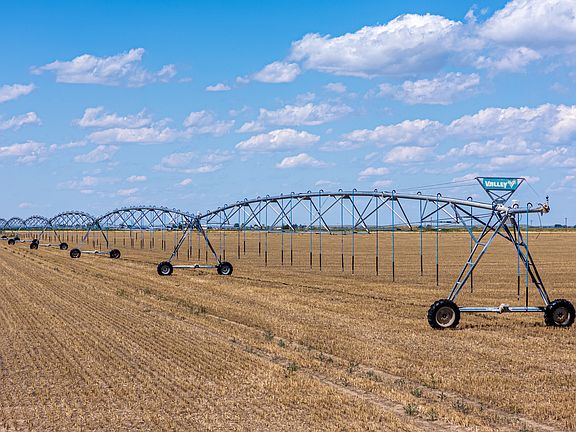 +- 310 acres of irrigated farm land located 10 miles south of Wiggins, Colorado. This includes 810 acre feet of water rights that can be used to irrigate the land using 4 wells with one well recently tested at 450 gallons per minute. The property is highlighted by 4 separate housing lots of just over 6 acres. Two taps are currently owned and paid for. +- 310 acres of irrigated Farm Land. The land is irrigated by two irrigation pivots. The land has 810 acre feet of adjudicated water rights that can be used to irrigate the land. There are currently 4 wells on the property. One well irrigation well is currently pumping at around 400-425 gpm. The other three wells will need to be re-drilled if the buyer desires. The land is dead level and is well located on good county roads in a prosperous farming area. The general area consists of pivot irrigated land that predominantly grows corn and alfalfa. There is one new irrigation pivot on the property and the other is in good working order. The well permit numbers are 10338-R, 10339-R, 4559-F and 10337-F. +-+-310 acres of irrigated farm land. 250 acres of pivot irrigated land. 810 acre feet of Adjudicated water rights with 4 wells: 10338-R. 10339-R, 4559-F and 10337-F. +- 4700 feet of elevation. The area is full of irrigated land growing corn, wheat and alfalfa. The property is located on good county roads 10 miles south of Wiggins, Colorado.