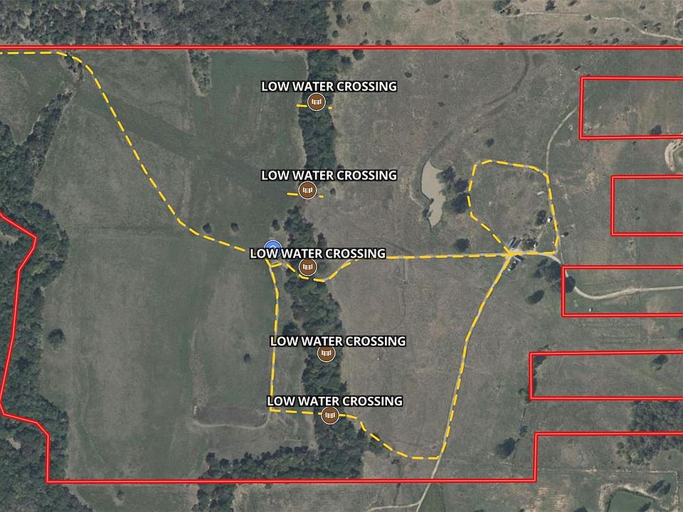 Wet-weather creekFive low-water crossingsScenic viewsOpen grazing areasMature treesAbundant wildlifeNatural drainage