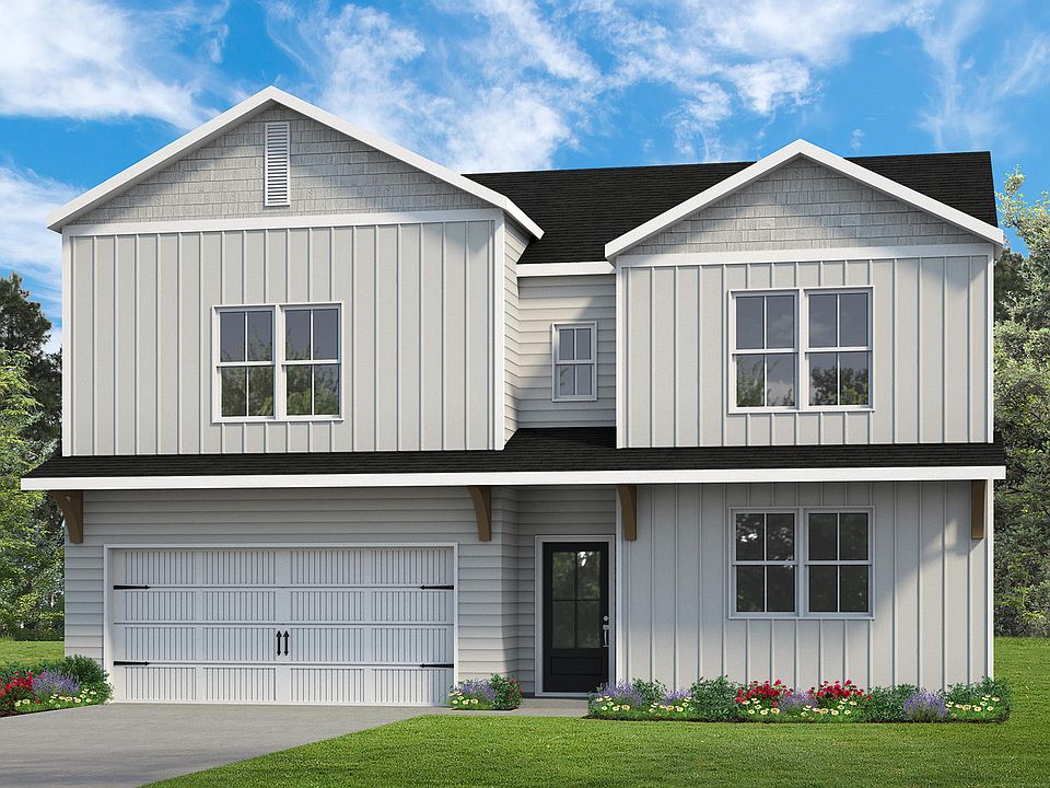 The Jasmine floor plan is perfect for those looking for a spacious and functional layout. This four-bedroom, three-bathroom home features an open floor plan with a large great room, kitchen, and loft that would make a perfect playroom, office, or sitting area.The home's main level boasts a large bedroom with its own full bathroom, making it ideal for guests or a multi-generational family. The primary suite is on the home's upper level and features a full bathroom with a double vanity and a spacious walk-in closet. The remaining two bedrooms are also on the upper level and share a full bathroom.This floor plan includes a large garage, perfect for storing cars and outdoor equipment. With its versatile and well-designed layout, the Jasmine floor plan is an excellent option for anyone seeking a spacious and functional home.